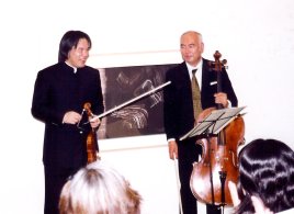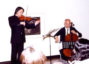 またコダーイのデュオはあまり演奏されないが、人間の内面に迫ってくる名曲。お二人の熱のこもった演奏で、素晴らしい記念演奏会の締めくくりとなった。 演奏会後、大橋さんから「小さなパーティーをしたいと思いますので、残れる方は是非ご参加ください。」とお声があり、ほとんどのお客様と、堤さん、徳永さんとの和やかなパーティーとなった。日頃演奏家と話すという機会はめったに無いこと。しかし、演奏以外のその個性に触れられることも、また音楽会に通う大きな要因の一つとなろう。また演奏家も聴衆が何を感じているかを会場以外のところで感じる場ともなる。最近、練習風景を公開したり、解説を交えたコンサートなども企画されているが、大橋さんのこういうプロデュースは是非他の音楽会場も考えてみる必要があろう。もちろん音楽会は本番が命、というのが大前提であっての話ではあるが。